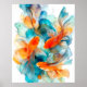 Three luminous koi glide through a dreamlike wash of turquoise and gold, forming a serene dance of balance and motion.