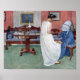 Une jeune femme regarde en bas comme une vieille femme en bleu hems sa robe. Art vintage de Carl Larsson.