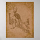 Remix cool d'une image de Jose Posada montrant quelques squelettes sur une bannière "La Calavera" qui coule. Cette version a un arrière - plan tan vintage grungy avec des fleurs dans les coins