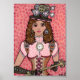 Décorez vos murs avec style grâce à cette petite affiche unique. Dans cette oeuvre d'art imaginative, cette jeune femme steampunk a pris le pouvoir avec un chapeau noir, des lunettes, un corset en cuir laqué, une jupe et un blouse roses, et des gants noirs tient sagement la clé de son propre coeur et ne la donnera à personne. Elle porte une grande montre de poche en collier, un équipement et une petite clé en boucles d'oreilles. Dans un style steampunk authentique, sa casquette dispose également de divers accessoires et d'autres objets mécaniques. Elle se dresse contre un arrière - plan de coeurs roses.