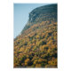 Une photo du mont Cannon à l'automne. Les feuilles des arbres sont passés du vert aux tons orange et jaune. Ces couleurs recouvrent la montagne, atteignant le sommet. Le profil de la montagne est le vestige de la pierre de granit où se trouvait autrefois un visage proéminent. Ce jour d'automne a un ciel bleu clair comme l'arrière - plan de la scène. Copyright ©2024 Kimberly J Tilley. zazzle.com/store/developingnature
