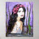 D'après ma peinture acrylique, Lady of the Lake. Lac fairy avec de longs cheveux noirs foncés avec un sourire doux et une belle face apparaissant dans l'eau calme du lac entourée de plantes d'eau.