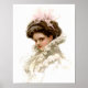 La femme Brunette avec arc rose et cape frileuse est au centre de ce joli poster vintage.