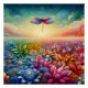 Cette peinture vibrante capture une libellule colorée qui s'envole librement au-dessus d'une prairie ornée d'une mer de fleurs radieuses. Ses ailes délicates la transportent gracieusement à travers les fleurs, ajoutant des éclats de teintes brillantes au décor, créant une représentation onirique de liberté et de vitalité.
