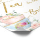 Cette enseigne élégante de table à thé présente une jolie aquarelle florale blush et un joli ensemble de théière et de tasses à fleurs. Objets correspondants pour compléter votre fête disponible en magasin! c) Le Happy Cat Studio