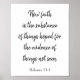 Rappelez-vous votre foi en utilisant cette affiche. Avec le verset de la Bible Hébreux 11:1 ce dessin dit "Maintenant la foi est la substance des choses espérées, la preuve des choses non vues" en noir sur un arrière - plan blanc. Commandez les vôtres dès aujourd'hui !