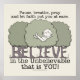 Little Boy est vu dans une pose détendue en haut des arbres illustrant la citation ci-dessus qui nous rappelle de pause, respirer, prier et laisser la foi vous mettre à l'aise. Les formes des troncs de ces arbres épellent le mot "CROYEZ" et la citation, "dans l'incroyable qui est VOUS!" ci-dessous qui complète le proverbe bien connu de David A. Carrizales. Dessin de Christie Black.