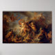 C'est une reproduction de "La Furie d'Achille" de 1737 par Charles Antoine Coypel. Huile sur Toile, 147 x 195 cm au Musée de l'Ermitage, St. Petersberg, Russie. Coypel est né d'un artiste français qui était le premier peintre du roi, poste auquel il atteint en 1747 l'âge de cinquante et un ans. Il a reçu de nombreuses commissions pour le Palais de Versailles et a été directeur de l'Académie Royale. Il avait aussi des talents littéraires en produisant deux tragédies, plusieurs comédies et quelques poèmes. Il mourut en 1752. Sa "Furie d'Achille" a été produite quand il avait quarante et un ans et décrit le passage dans l'Iliade où Achille fait rage à travers la plaine de Troie et même combat avec la rivière Scamander.
