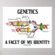 Montrez le côté psychologue de votre biologiste moléculaire avec cette affiche qui présente toutes les parties clés de la réplication de l'ADN ainsi que le dicton "La génétique, une facette de mon identité".