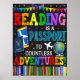 LIRE EST UN PASSEPORT À D'INNOMBRABLES AVENTURES BIBLIOTHÈQUE DE SALLE DE CLASSE POSTER Une affiche géniale, belle et motivante pour décorer n'importe quelle salle de classe ou bibliothèque d'école! Le design présente des couleurs vives et attrayantes et des graphiques contre un arrière - plan de tableau de bord faux. Encouragez les élèves à cultiver la joie de lire, d'aventure et de se perdre dans un livre à un jeune âge!