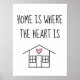 L’affiche Home Is Where the Heart Is avec le doodle de la maison et le coeur rose de Nikki’s Paper Co.
