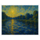 Cette oeuvre saisit la beauté tranquille mais dynamique d’une rivière à l’aube, repensée à travers l’objectif expressif du style signature de Vincent van Gogh. La scène est vivante de mouvement — le doux courant brille de lumière dorée, tandis que le ciel au-dessus se transforme d'indigo profond en corail chaud. Les coups de pinceau tordus créent une harmonie rythmique entre l'eau et le ciel, évoquant la magie tranquille d'un nouveau jour qui se déroule.