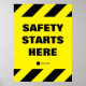 Affiche de sécurité en milieu de travail jaune et noir avec les mots "La sécurité commence ici" et le logo. Entièrement personnalisable. Vous pouvez modifier le texte, mettre le logo de votre entreprise ou le supprimer. Assurez-vous que vos employés se souviennent de la sécurité.
