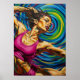 Une peinture à l'huile Art déco désorientante capture un gros plan intime d'angle hollandais d'une athlète, sa forme est rendue dans des couleurs audacieuses d'inspiration fauviste avec un uniforme magenta vibrant, déformant contre un arrière - plan vortex chaotique et trouble.