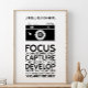 La vie est comme une caméra. Concentrez-vous sur ce qui est important. Prenez les bons moments. Développez à partir des négatifs. Et si les choses ne fonctionnent pas, prenez une autre photo. Affiche de devis inspirante.