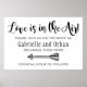 Décontracté chic signe d'accueil mariage / affiche caractéristiques script élégant "L'amour est dans l'air" écriture avec accent design flèche. Couleurs classiques en noir et blanc.