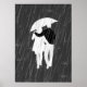 Image silhouette d'un couple romantique vue du dos et marchant le long de la rue sous le parapluie sous la pluie battante. Couleurs noir et blanc. L'amour ne connaît pas le mauvais temps. Une affiche minimaliste élégante pour tous. Vous pouvez choisir la variété de tailles selon vos besoins. Vous pouvez transférer cette conception à de nombreux autres produits, il suffit de choisir l'option sous l'image. Profitez et soyez heureux !