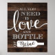 Poster L'AMOUR Rustique Chic ET UNE BOUTEILLE DE VIN Impr