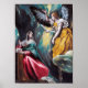 El Greco (1er octobre 1541 - 7 avril 1614) était peintre grec, sculpteur et architecte de la Renaissance espagnole. El Greco est né dans le royaume de Candia (Crète moderne), qui faisait alors partie de la République de Venise, et le centre de l'art post-byzantin. Il a formé et est devenu un maître dans cette tradition avant de voyager à 26 ans à Venise, comme d'autres artistes grecs l'avaient fait. En 1570, il s'installe à Rome, où il ouvre un atelier et réalise une série d'oeuvres. Lors de son séjour en Italie, El Greco enrichit son style d'éléments du maniérisme et de la Renaissance vénitienne tirés d'un certain nombre de grands artistes de l'époque, notamment Tintoretto. En 1577, il déménage à Tolède, en Espagne, où il vit et travaille jusqu'à sa mort. À Tolède, El Greco a reçu plusieurs commandes majeures et produit ses peintures les plus connues. Le style dramatique et expressionniste d'El Greco a été accueilli avec perplexité par ses contemporains mais a trouvé appréciation au 20ème siècle. El Greco est considéré comme un précurseur de l'expressionnisme et du cubisme, tandis que sa personnalité et ses oeuvres ont été une source d'inspiration pour des poètes et des écrivains comme Rainer Maria Rilke et Nikos Kazantzakis. El Greco a été caractérisé par des érudits modernes comme un artiste si individuel qu'il n'appartient à aucune école conventionnelle[4]. Il est surtout connu pour des figures tortueusement allongées et souvent une pigmentation fantastique ou fantasque, en mariant les traditions byzantines avec celles de la peinture occidentale. Citation : Wikipedia