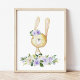 Poster Lapin Bébé, Animaux De Bois, Boho, Fleurs Violette