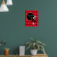 Salutation d'anniversaire festive - illustration vintage du lapin blanc en robe de Reine des Coeurs teintée rouge avec cercle de texte personnalisable en noir et or et arrière - plan de diamant rouge / or / noir