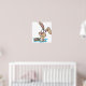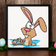 Un lapin de Pâques tenant sur un panier. Ce design semble vraiment efficace sur cette affiche