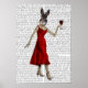 Poster Lapin en robe rouge