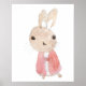 Poster lapin mignon en couleur aquarelle de veste rouge 2