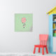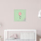 Une affiche avec un lapin fantaisiste tenant un gros ballon rose flottant dans les airs. Sur un fond vert clair.