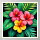 Plongez dans un monde de couleurs vives et de beauté exotique avec cette magnifique oeuvre d'art. Une collaboration unique entre l'IA avancée et un artiste compétent, ce design captivant présente un bouquet radieux de fleurs d'hibiscus et des feuilles luxuriants de palmiers. Les vives fleurs roses, rouges et jaunes s'élèvent contre un arrière - plan sombre, créant un chef-d'oeuvre audacieux et tropical. Parfait pour apporter l'essence de l'été et un paradis insulaire serein dans n'importe quel style, cette pièce témoigne de la fusion harmonieuse de la technologie et de l'esprit artistique. C'est une belle célébration de la flore la plus enchanteresse de la nature.