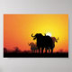 Un troupeau de buffles du Cap se tient en silhouette contre les feux du soleil couchant. L'art informatique de Kathie Miller.