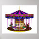 Un joli carrousel rose très coloré, une image joliment décorée, avec des chevaux en bois de toutes les couleurs et des motifs qui ajoutent vraiment une touche de carnaval ou de cirque.