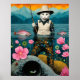 OEuvre colorée dans un style surréaliste de pêche au chat