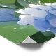 Un chat blanc et moelleux profitant de la pluie dans un jardin. Le chat est entouré de grands feuilles verts et de fleurs bleues. Il y a des gouttes de pluie qui tombent doucement autour du chat, quelques gouttes atterrissant sur les feuilles et des fleurs. Les rayons du soleil filtrent à travers les feuilles, créant un effet léger et éthérée sur la scène. Le chat a les yeux fermés et semble être dans un état calme et heureux. L'ambiance générale de l'image est calme, paisible et rafraîchissante.