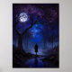 Une oeuvre d'art d'une beauté éternelle saisit l'essence de la solitude comme une figure solitaire traverse une forêt sombre illuminée par la lueur éthérée d'une pleine lune. Les branches torsadées et squelettiques des arbres morts créent une ambiance macabre, jetant des ombres inquiétantes sur le chemin. Le ciel au-dessus est une toile céleste ornée d'innombrables étoiles, ajoutant une touche de mystère cosmique à la scène. L'homme solitaire, entouré par la mélancolie tranquille de la nature, évoque un sentiment de contemplation et d'introspection.