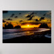 Au Quileute Oceanside Resort à La Push, Washington, en regardant vers le nord le long de la rive à la tombée de la nuit. Un beau coucher de soleil éclatant à travers quelques nuages, et les falaises rocheuses du littoral, dont les îles James et Little James, dans l'obscurité avec les pins silhouettes contre le ciel. Quelques personnes assises dans l'ombre profitent de la vue. Veuillez consulter nos autres annonces pour cette impression pour différentes tailles et types d'impressions. De plus, contactez-nous si vous souhaitez voir ce design sur d'autres produits ou dans des tailles différentes.