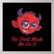Illustration vectorielle d'un petit diable délirant mignon aux grands yeux avec le texte Le Diable m'a fait faire. Mots clés : diable, enfer, mignon, démon, mal, satan, halloween, monstre, cornes, horreur, adorable, doux, délirant, délirant, précieux, attachant, adorable, adorable, attrayant, engageant, chéri, chéri, gagnant, gagnant, charmant, enchanteur, attirant, joli, adorbs