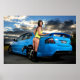 Fille posant avec Ford Falcon Turbo voiture chargée.