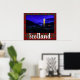 Belle affiche pittoresque avec vue nocturne du monument de Glenfinnan, sur Clan Stewart arrière - plan tartan avec superposition de texte "Scotland"