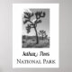 L'image montre une photo en noir et blanc d'un paysage désertique avec deux proéminents Josué. Les arbres sont grands contre un ciel bouché, leurs branches s'étendant dans des directions variées. Le premier plan est rempli de végétation désertique basse, créant un sens de profondeur et de texture.