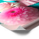 L'imprimé d'art numérique blanc et surréaliste présente un adorable lapin turquoise teinté et moelleux en robe rose avec de belles fleurs de printemps. Créé à l'aide de logiciels générés par l'IA.