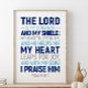 Le Seigneur est ma force et mon bouclier; mon coeur fait confiance en lui, et il m'aide. Mon coeur bondit de joie, et avec ma chanson je le loue. Psaume 28:7, OEuvre murale des Écritures, Poster du verset de la Bible, Citation de la Bible Inspirationnelle, Don chrétien. #bible_verses #scripture_wall_art #bible_quotes #christian_cadeau