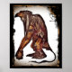 Troll avec les bras traînant le sol et une longue queue dans l'illustration en terre cuite. Illustration vintage de l'artiste suédois John Bauer.