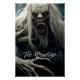 Cette affiche présente un Wendigo, une créature à la peau blanche pâle, monstrueuse avec de grandes griffes acérées et des yeux rouges brillants. Sa bouche est large ouverte dans un sinistre hurlement avec de grands crocs jaunâtres, tranchants et prêts à déchirer dans la chair humaine. Il a un appétit insatiable et est un mangeur humain vraiment vicieux.