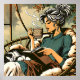 Poster Lecture confortable Lady avec carte de café et de
