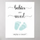 Un beau panneau d'affiche pour votre baby shower avec "babies are sweet" écrit dans un mélange de typographie moderne et un script élégant avec des swashes, et une aquarelle pastel vert menthe de pieds bébé.