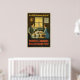 L'affiche montre un homme et une femme avec des sacs de farine et de sucre en cagoule, regardant la silhouette d'un policier marchant près de leur fenêtre aveugle couverte. Une déclaration de la Commission alimentaire canadienne, détaillant les amendes pour thésaurisation, est accrochée au mur. L'hébergement était une infraction canadienne punissable pendant la période ww1. Certaines rayures retirées poster est destiné à conserver un look nostalgique usé.