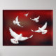 UN DESSIN DE CHIENS BLANCS EN VOL CONTRE LE CIEL ROUGE