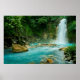 Cette photo présente des cascades sur la rivière Bleue et est la principale attraction dans les eaux turquoise de la forêt.