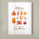 Cette belle affiche murale d'automne a la citation "L'automne est un deuxième printemps quand chaque feuille est une fleur." Cette affiche présente un design de feuilles d'automne colorées en aquarelle, capturant l'essence de la saison. Les feuilles sont dépeints dans différentes teintes de rouge, d'orange et de jaune, créant une scène vibrante et attrayante. Le design est un complément parfait pour votre décor de maison sur le thème de l'automne.